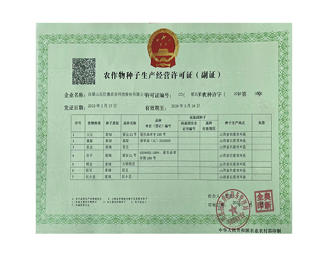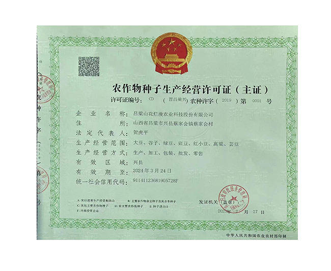 呂梁山花爛漫農(nóng)業(yè)科技股份有限公司是山西省農(nóng)業(yè)產(chǎn)業(yè)化重點(diǎn)龍頭企業(yè),公司成立于2008年,法人代表賀虎平,注冊資本1000 萬元,現(xiàn)有員工 30 人。公司位于興縣蔡家會鎮(zhèn)蔡家會村建有占地面積1萬多平方米生產(chǎn)區(qū)和辦公區(qū),年總加工雜糧能力達(dá)到4萬噸。擁有一套日精加工50噸谷子成套設(shè)備生產(chǎn)流水線;擁有一套日精加工30噸豆面、蕎面設(shè)備流水生產(chǎn)線;擁有一套日精加工50噸紅小豆、豇豆、綠豆、腎型黃豆、紅蕓豆設(shè)備流水生產(chǎn)線,2020年引進(jìn)省農(nóng)科院農(nóng)產(chǎn)品加工研究所谷子精深加工技術(shù),目前設(shè)計(jì)年產(chǎn)300噸的小米油加工一條龍生產(chǎn)線已經(jīng)安裝調(diào)試完畢,產(chǎn)品經(jīng)化驗(yàn)達(dá)到國家一級油標(biāo)準(zhǔn),并獲得兩項(xiàng)專利證書。主要產(chǎn)品有“山花爛漫”牌有機(jī)小米、綠色小米各種精美包裝系列;蔡家會村豇豆面、豌豆面等雜糧面、手搟豆面系列、以及有機(jī)精品雜糧系列。擁有“山花爛漫”山西省著名商標(biāo)。公司采用線下和線上銷售相結(jié)合的營銷模式。